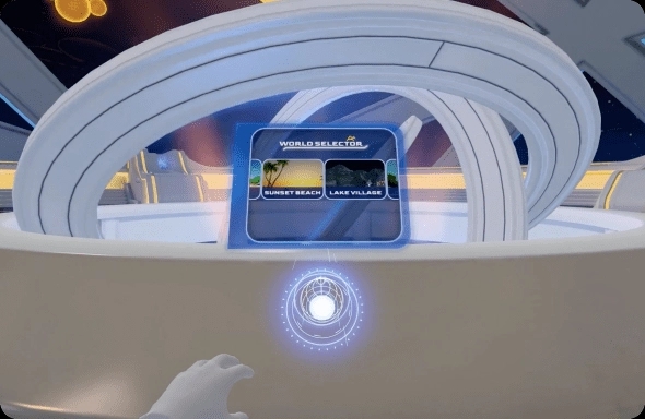 These meditations in immersive worlds include only audio and visuals without any interactions. For example, guided meditations and soothing music, and visuals of a cozy snow mountain village are designed to help users reflect within and get ready for sleep.